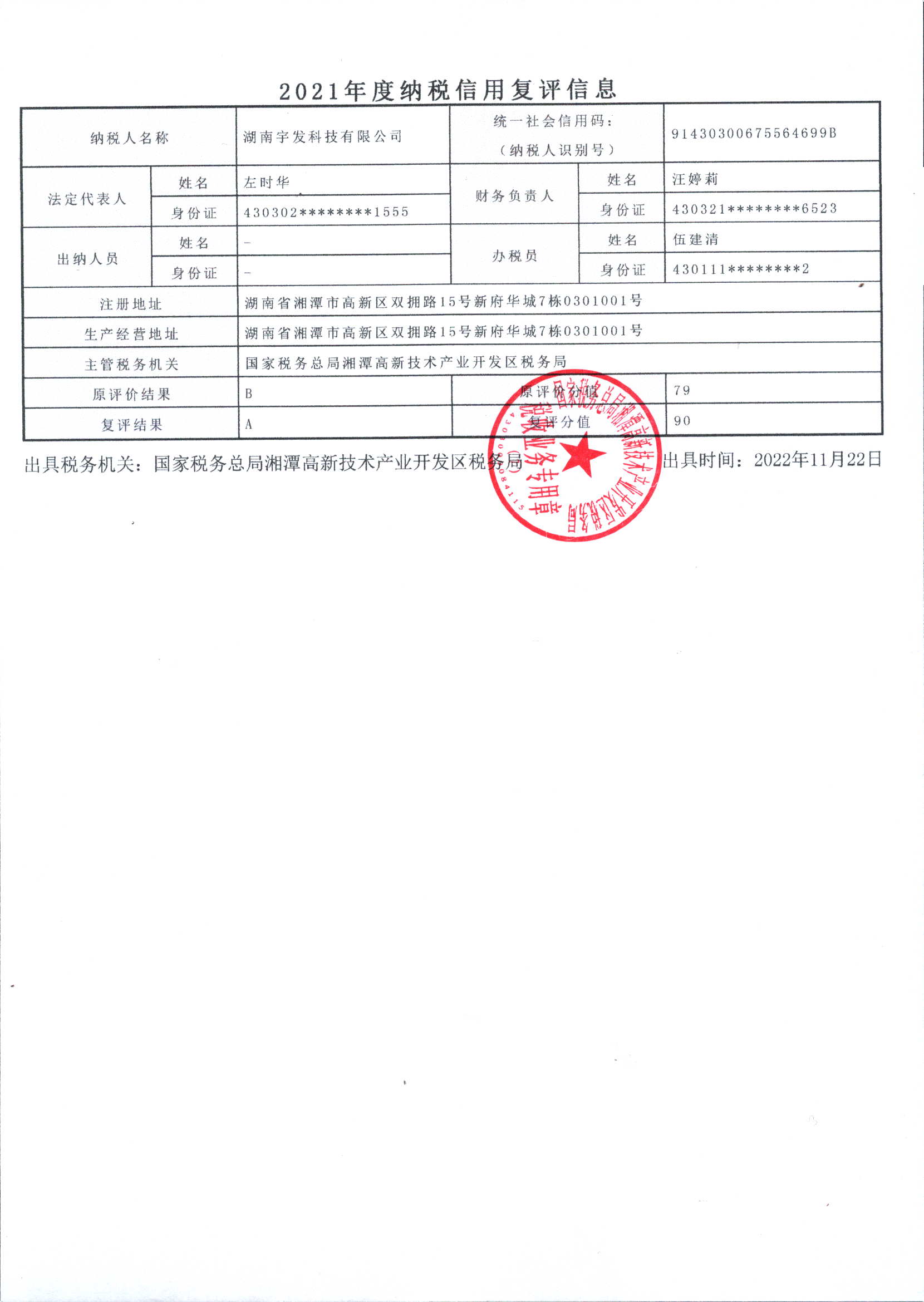 企業(yè)納稅信用等級報告: